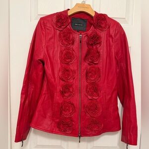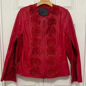 Loryna Jacket Red Leather Jacket With Floral Detailing