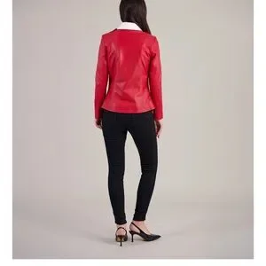 Red leather Jacket with princess seams