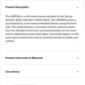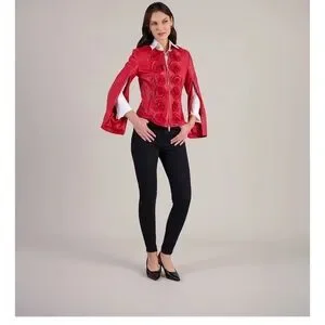The LORYNA is a soft leather jacket in Red leather. The LORYNA jacket is accentuated by caviar-bead embedded flowers along the front side. This jacket features a rounded neckline, princess seams from the shoulder to the hem, concealed pockets on the seam and an exposed two-way metal zipper. Concealed zippers on the inner sleeve seams from wrist to armhole provide versatility and comfort.