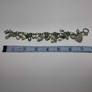 This is not a Tiffany & Co. Charm Bracelet. It is a silver tone charm bracelet with jade green charms and an authentic Tiffany & Co. heart tag charm in great condition.
