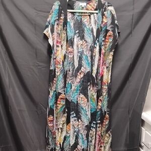 Multicolor Feather Print Maxi Dress