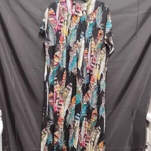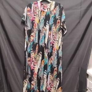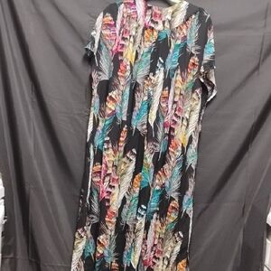 Embrace vibrant style with this multicolor feather print maxi dress. Perfect for any occasion, this dress offers a blend of comfort and elegance.