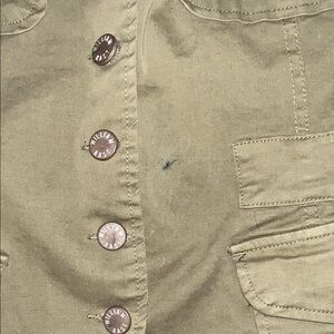Stylish green utility jacket with classic design. Features button details and practical pockets.