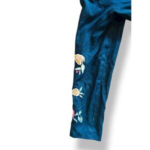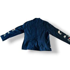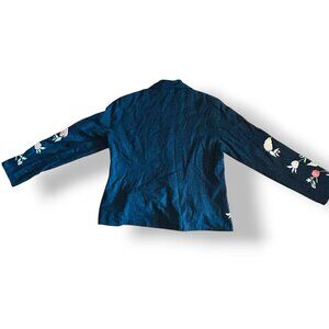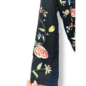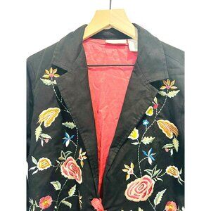 Soft Surroundings Tie Front Blazer Jacket Size Med Floral Black Pink Embroidered