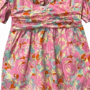 Charles Henry Pink Floral Sweetheart Cutout Dress | Smocked Back | L | Like New