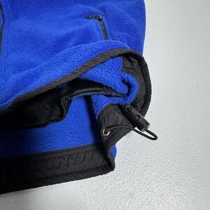 Vintage Most Wanted fleece vest in blue with a red embroidered crab at the chest. Full zip front, two zip pockets, and adjustable hem. Good preowned condition with light wear. Please see photos.