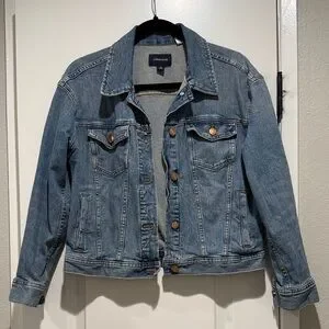 Timeless denim jacket with button front. Features dual chest pockets and a smart collar.