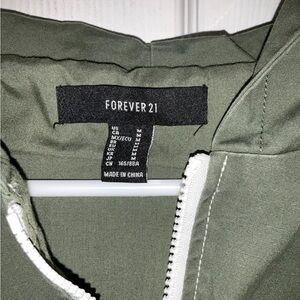 Look stylish in this Forever 21 Women's Crop Hoodie Jacket in size Medium. The green color and cropped style add a touch of trendiness to your wardrobe. The zip-up closure and long sleeves make it perfect for colder days, while the cotton blend material ensures comfort all day long. It's a great addition to any casual outfit and ideal for women who love fashion.