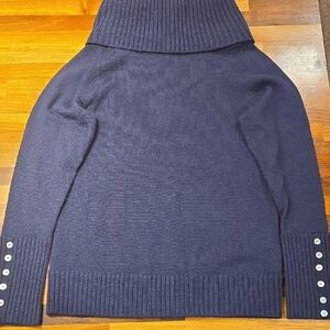 Tweeds 100% Merino Wool Navy Cowl Neck Sweater - M - Mother of Pearl Detail