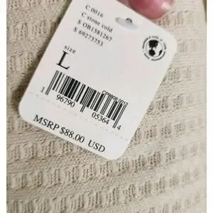 Free People Top Style: Juicy Long Sleeve Size L Color: ivory, off white, gray. Stone cold Brand new still wrapped NWT Waffle Knit, Cowl neck Flat measurements: 29" pit to pit 25" long Breathable, sustainable, minimalist, comfort, lagenlook, coastal, resort, coastal Bohemian, boho, flowy, beachy, coastalgrandma, vacation, Feminine, romantic, flattering Casual, oversized, monochromatic, normcore,