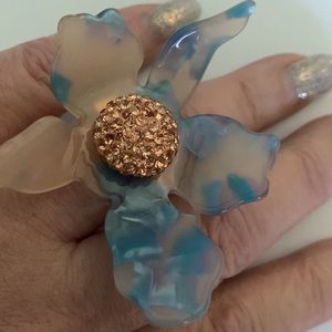 Gorgeous gold color crystal pave center of colorful flower signature Ring size 7 little tight