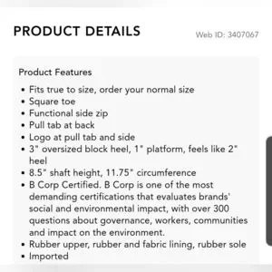 3” oversized block heel with 1” platform (feels like a 2” heel)