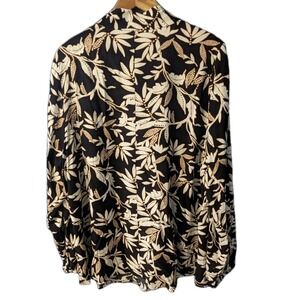 Lane Bryant Botanical Print on Black Crepe Long Sleeve V-neck with Tie Front