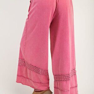 CROCHET TAPE DETAILED TERRY KNIT PANTS