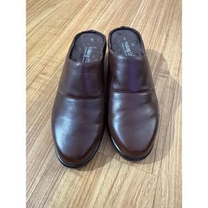 Walking Cradles Leather Mules Women's 7W Brown Slip On Clogs Caden Brown Nappa