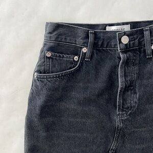 AGOLDE Quinn Buttonfly Denim Mini Skirt in Cult Black Size 24 $128