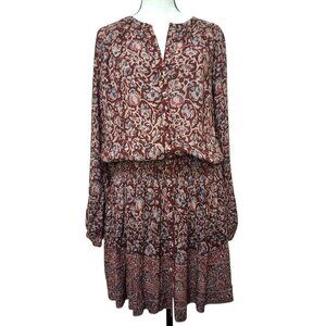 Faherty Montara Blouson Mini Dress Burgundy Multicolor Womens S