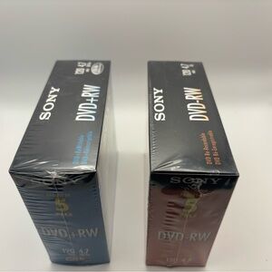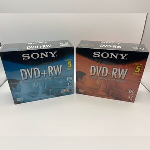 Brand new, factory-sealed Sony rewritable DVDs. This lot includes both formats—DVD+RW and DVD-RW—making it ideal for compatibility with a wide range of DVD recorders, camcorders, and older home video equipment.