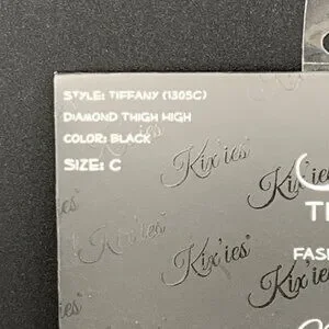 Kixies Thigh Highs Black Diamond Pattern Size C No-Slip Grip Tiffany 1305C