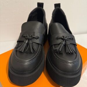 Chic black platform loafers by Rocket Dog. Features stylish tassels and a bold design.