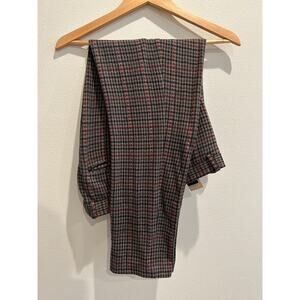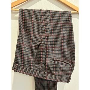 The blazer is a comfortable Size L, featuring a unique knitted texture and a classic checker plaid pattern that truly stands out. The matching suit pants are a Men's Size W34 x L32, designed to provide a sleek and comfortable fit.