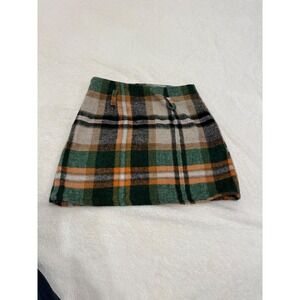 Meglio Cosi Green Orange Plaid Mini Skirt Made in Italy Size S 26ART1474