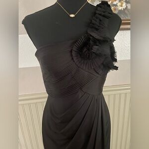 Adrianna Papell Boutique Evening Black Ones Shoulder Column Gown size 10