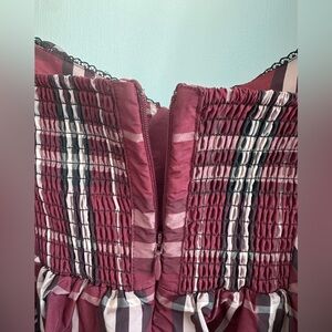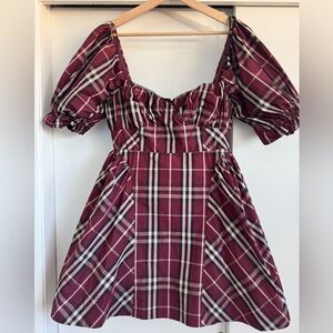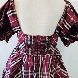 Anthropologie Maeve Plaid Maroon Tartan Burgundy Mini Puff Sleeve Dress Size S