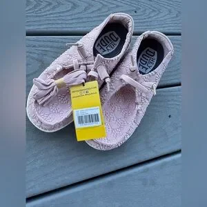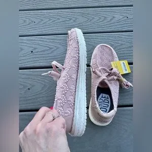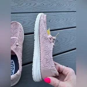 Hey Dude Women’s Size 7 Mauve Lace Slip-On Shoes Floral Crochet Lightweight NWT