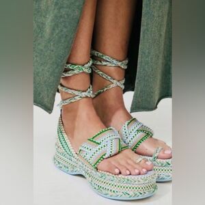 Free People Amambaih Manuela Green Blue Strappy Wedge Sandals