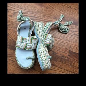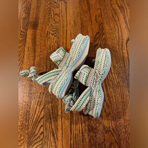 Anthropologie Amambaih Manuela Green Blue Strappy Wedge Sandals Size EU 40