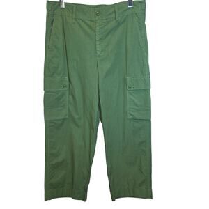 J. Crew Cargo Pants Ripstop Cotton Sz 31 12 Green Straight Leg Crop High Rise