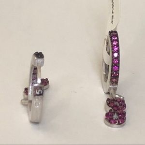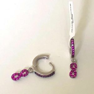 Compass infiniti hanging hoops , fuchsia purple like ruby pink cubic zirconia stone , 925 sterling silver for girls or women in free gift box