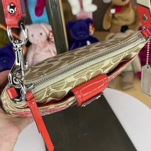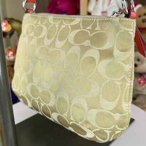 π₯COACH - RARE Poppy Khaki Signature Coral Flower Sequin Crossbody Bag - 45U099