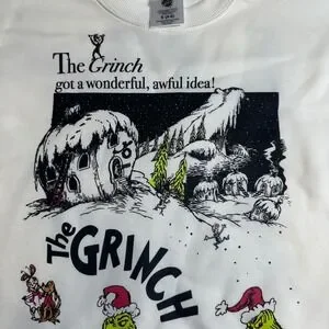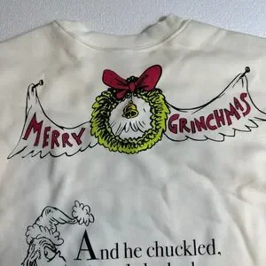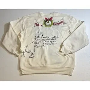 Dr Seuss The Grinch Christmas Sweatshirt Cream Graphic Pullover Mens Small 4-6