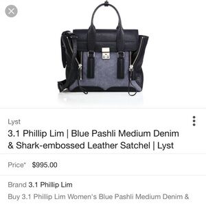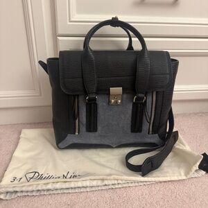 Authentic 3.1 Phillip Lim Blue Pashli Medium Denim & Shark Embossed Leather Satchel