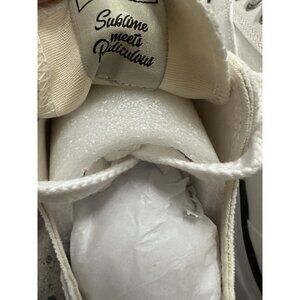 Canvas upper and rubber soleMade in ChinaLace-up frontLogo tag detail at tongueDebossed logo at back counterVentilating eyelets at sideApprox 25mm/ 1 inch platformOur Style No. MUHF-MZ8Manufacturer Style No. A12FW706-WHITE