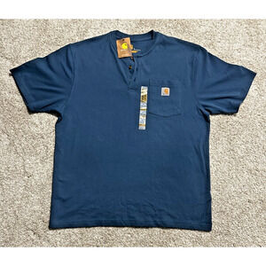 Carhartt Men’s Original Fit Henley T-Shirt Large L Blue Pocket Short Sleeve NWT