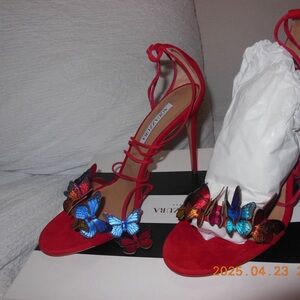 Aquazzura Papillipon 105 mm suede sandal in Lipstick.