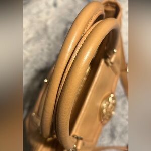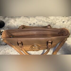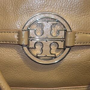 This bag is in great condition, clearly cared for and gently used. The stitching, hardware, straps, corners and interior are in excellent condition. Her stitching is free from tears, pulls or rips. The only callout is a small rubbing spot to the left of the Tory Burch badge. Can easily be touched up.