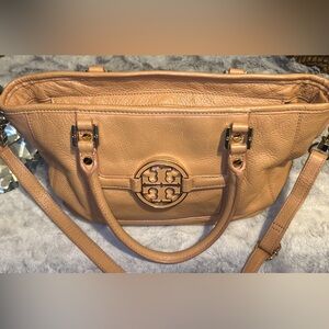Up for grabs is a preowned, preloved, and gently used Tory Burch Amanda Hobo bag.