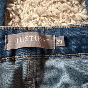 Chic Just USA Denim Flare dark wash vintage denim y2k Jeans in Blue jeans with a wide leg design. Ideal for everyday wear. Size 29