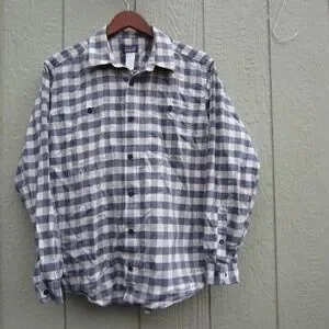 Patagonia Shirt Mens M Grey/white Plaid Pockets Button Up Cotton hiking outdoor