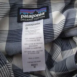 Patagonia Shirt Mens M Grey/white Plaid Pockets Logo Button Up Organic Cotton Casual Comfy hiking