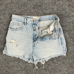 PacSun Denim Shorts Womens Size 26 Light Wash High Rise Distressed Frayed Hem Button Fly