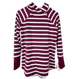LuLaRoe Striped Cowl Neck Pullover Top Burgundy White Size XS NWT