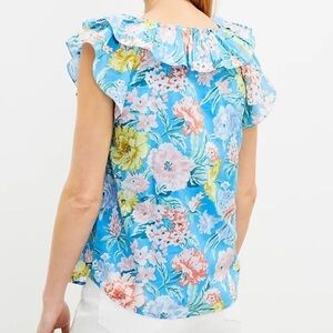 LOFT Petite Garden Ruffle Shell Top Floral Print Flutter Sleeve LP