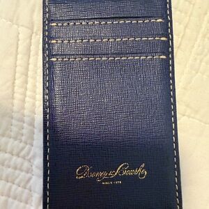 Dooney and Bourke elegant navy blue card holder and key fob set perfect for organizing your essentials. Features a sleek design with a touch of sophistication. Very wonderful condition. Slight scuff on key ring.