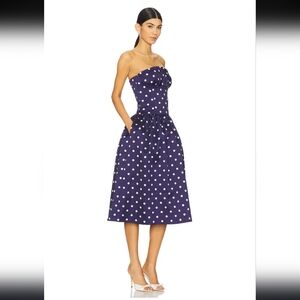 Self-Portrait's dress embodies timeless retro glamour. Made from polka-dot satin, it has a strapless pleated bodice evocative of corset styles and falls to a voluminous gathered skirt. Wear yours with diamond drop earrings and kitten heel pumps.