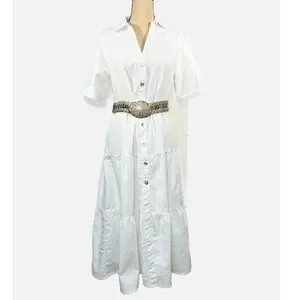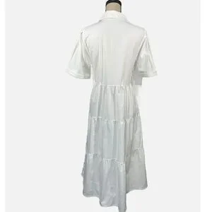 Boho Vibes White Button down Ruffle Short Sleeve Dress
